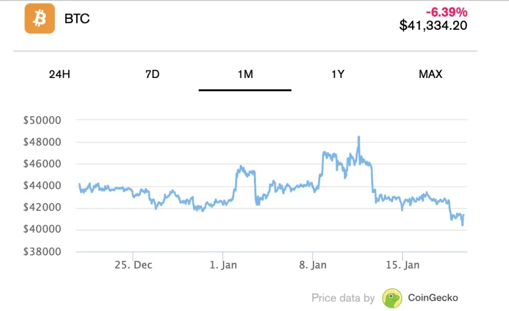 Bitcoin (BTC) büyük bir düşüş yaşıyor ve beraberinde büyük altcoinleri de çekiyor. CoinGecko’ya göre Bitcoin geçtiğimiz gün neredeyse %4 oranında düşüşle şu anda 40.640 dolardan işlem görüyor.