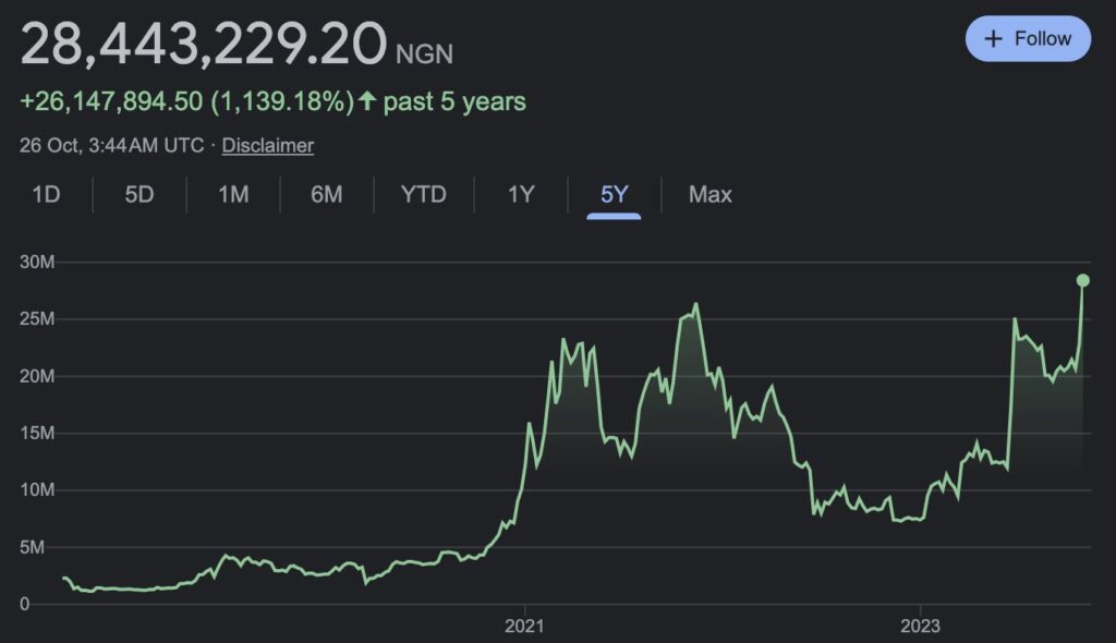 Lider kripto para Bitcoin geçtiğimiz gün 35.000 doları aşarak 2023 yılının en yüksek seviyesine ulaştı. Bununla beraber para biriminde düzenli olarak değer kaybeden ülkelerden yeni ATH’ler geldi. Bitcoin, Türk lirası bazında 1 milyon liraya yaklaştı. Bu tarihte bir ilktir. Varlık, Arjantin pezosunda 12 milyona, Nijerya nairasında ise 28 milyona ulaştı. Bununla beraber Bitcoin’in yaşadığı yükseliş, bu para birimlerinde daha önceki yıllarda gelen rekorları geçmiş oldu. Ancak bunun para birimlerinde devam eden devalüasyondan kaynaklandığı unutulmamalıdır.