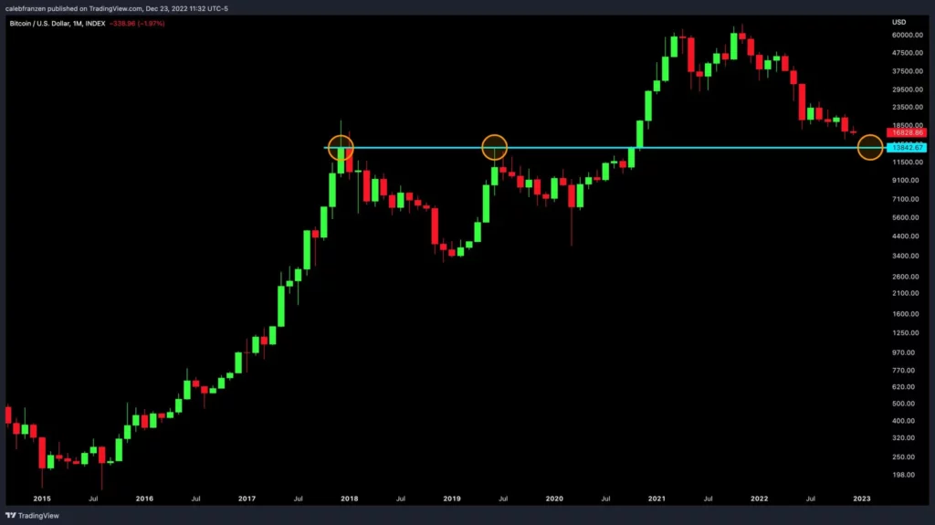 Bu hedefin, o döngünün zirvesi olan Aralık 2017’de Bitcoin fiyatının kapandığı seviye olduğunu açıkladı. Ayrıca aynı seviye 2019 yılında tam olarak 13.900 dolar seviyesinde direnç görevi görmüştür. Bu veriler, analistin BTC’nin muhtemelen bu hedefe ulaşacağından emin olmasını sağlıyor. Ancak, analizinin kesin bir tahmin olmadığını belirtti.