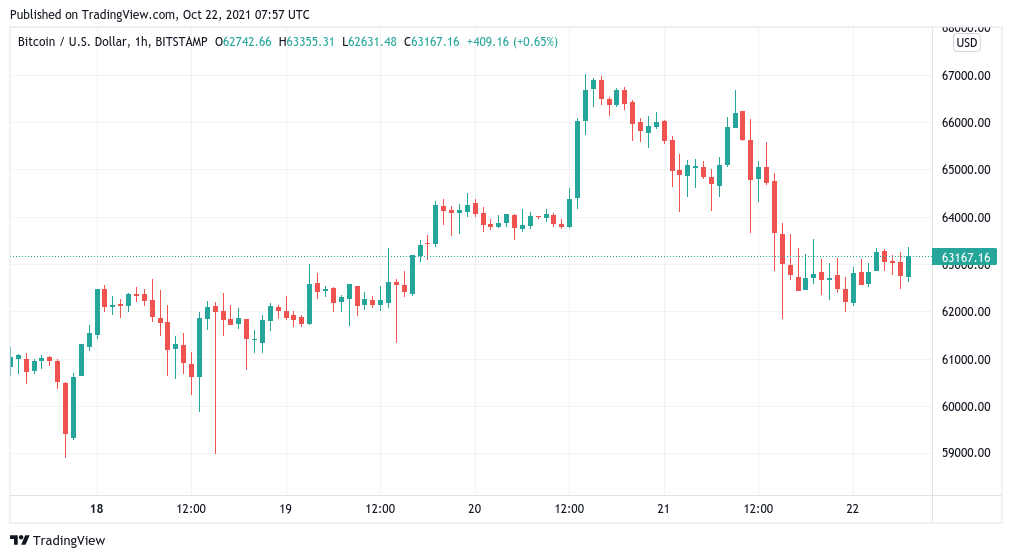 Bitcoin (BTC), 22 Ekim’de en büyük altcoin Ether’in (ETH) rekor kırmada başarısız olmasının ardından, 60 bin dolara daha yakın seyrediyor.