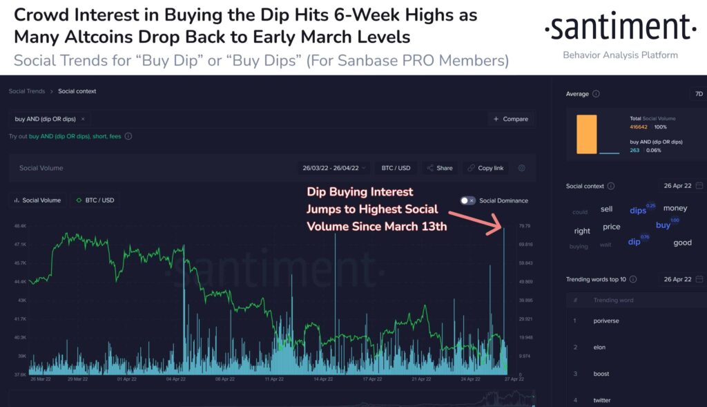 Ancak zincir içi veri sağlayıcısı Santiment, Bitcoin düşüşlerini satın alma konusundaki sosyal ilginin hızla arttığını belirtiyor. Şunları açıkladı :