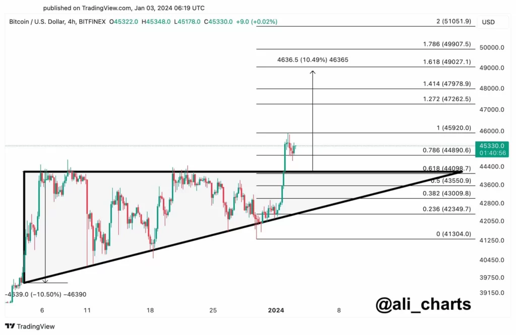 Bitcoin ETF onayı yaklaşırken herkes Bitcoin’in bundan sonra nereye gideceğini merak ediyor. Bu haftanın başlarında Bitcoin fiyatı 45.000 doların üzerinde güçlü bir çıkış yaptı ve bu seviyenin üzerinde kalmaya devam ediyor.