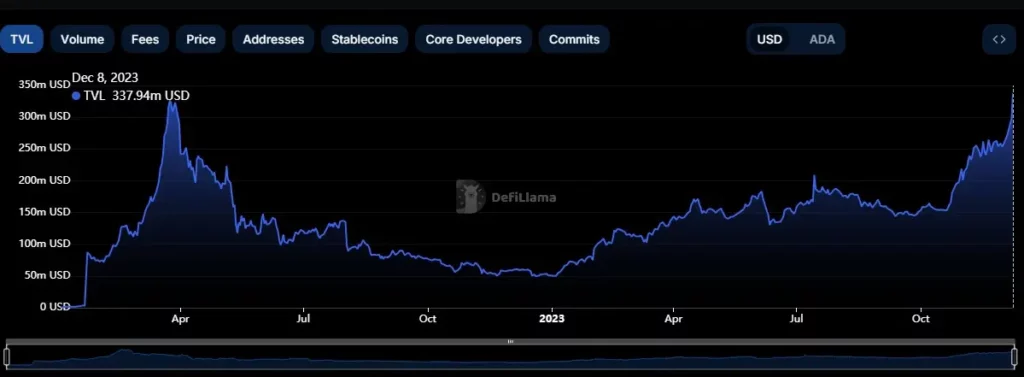 Cardano ağı içerisinde DeFi ekosistemi hızla genişliyor. ADA kilitlenen toplam değer (TVL) yaklaşık 302,39 milyon dolar olup tarihi zirve Mart 2022’de gerçekleşti. Analiste göre bu büyüme kısmen ADA’nın fiyat artışına bağlanıyor. Ayrıca analist, Cardano ağına gelecek yeni DeFi projelerinden ve protokollerinden bahsetti.