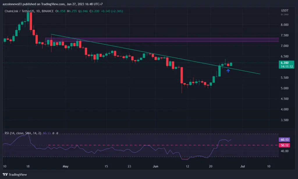Günlük RSI göstergesi 50 seviyesinin üzerine çıktı ve yükseliş trendini sürdürerek yükseliş trendinin devam etmesini destekliyor. Bu nedenle, LINK fiyatı önümüzdeki günlerde en yakın direnç seviyesi olan 7,2 $’a yükselebilir.