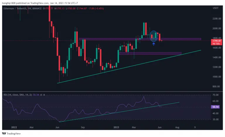 Ancak, fiyat geçen hafta bu destek bölgesinin altına girerek yükseliş modelini geçersiz kıldı. Bu, boğaları tuzağa düşürdüğü ve genellikle bir satışla takip ettiği için son derece düşüş eğilimi gösteren bir gelişmedir. Eğer öyleyse, ETH’nin fiyatı yatay bir destek bölgesi ve uzun vadeli yükselen bir destek hattından oluşan bir sonraki destek seviyesi olan 1.470 $’a düşebilir.