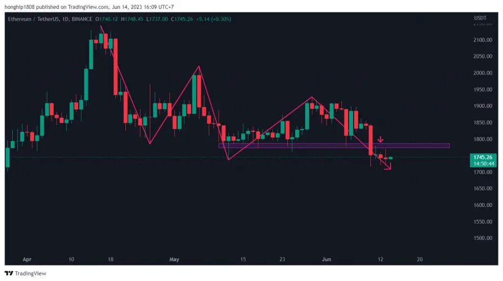 En olası görünüm, ETH fiyatının özellikle yakın gelecekte düşmeye devam edeceğini gösteriyor. Bu aşağı yönlü hareket için potansiyel hedeft 1.470 dolar.