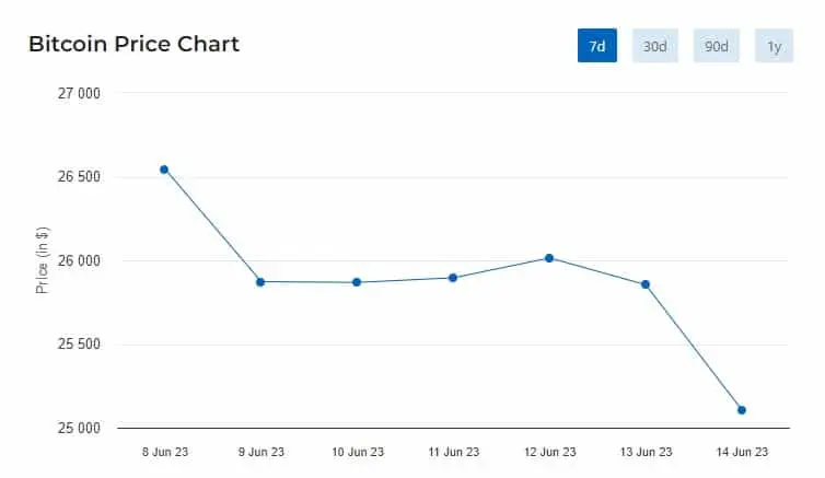 Bitcoin Fed’in faiz oranlarına ilişkin kararının ardından en az %4’lük rekor kayıplar kaydetti. Bitcoin fiyatı Perşembe günü 25.040 dolardan işlem görmekteydi. Şimdi keskin düşüş 24.835 dolara çıkarak yedi günlük kümülatif kayıpları %5,1’e çıkardı.
