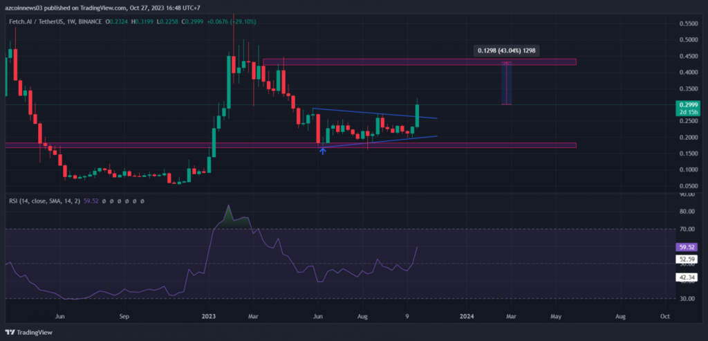 Popüler token FET, şu anda üçgenin üzerinde kırılma ve büyük bir yükseliş mumu oluşturmaya çalışıyor. Başarılı olursa, boğaların piyasanın kontrolünü ele geçirdiğini doğrulayacak. Böylece bunu muhtemelen yeni bir yükseliş trendi takip edecektir. Haftalık RSI (Göreceli Güç Endeksi), 50 seviyesinin üzerine çıktı. Yukarı doğru eğimi nedeniyle potansiyel kırılmayı destekliyor. Yükseliş ivmesi devam ederse FET, mevcut seviyeden %43 artış yaşayabilir. Böylelikle 0,43 dolarlık önemli bir yatay direnç bölgesine ulaşır.