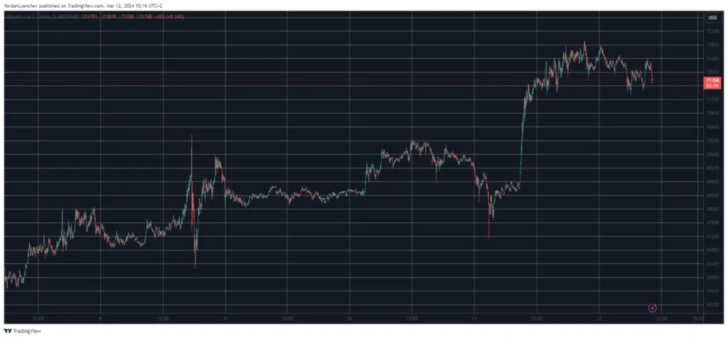 O günün ilerleyen saatlerinde, BTC’nin ilk kez 70.000 doların üzerine çıkmasına neden olan başka bir yükseliş başlattılar. Bunu başka bir reddedilme takip etti, ancak bu kısa sürdü ve Bitcoin hafta sonu 69.000 dolar civarında nispeten sessiz kaldı.