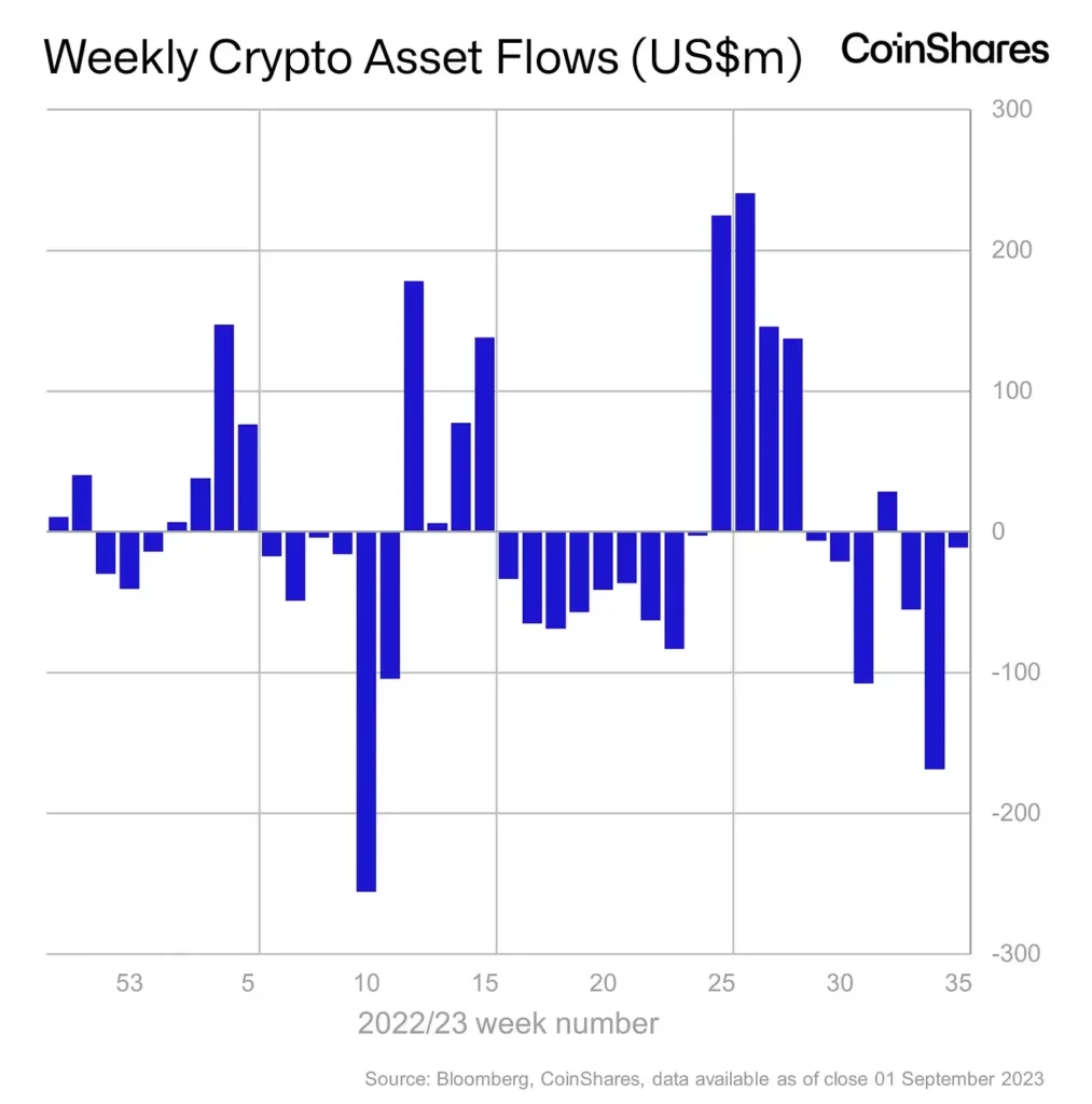 Bitcoin (BTC), Polygon (MATIC) ve Ethereum yatırım ürünleri geçen hafta sırasıyla 3,8 milyon dolar, 8,6 milyon dolar ve 3,2 milyon dolarlık çıkış yaşadı. Ancak küçük çıkışlara rağmen CoinShares, işlem hacimlerinin arttığını söylüyor.
