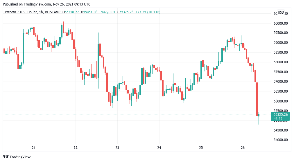 TradingView’den gelen veriler, yoğun oynaklığın ortasında yazı yazılırken 54.000 dolara doğru giderken BTC/USD’yi takip ediyor. Yatırımcılar, Perşembe günü geç saatlerde Bitcoin’i 60.000 dolara getirdikten sonra büyük satış baskısı ile karşı karşıya kaldı ve direnci kırmak için yapılan son girişim geri çekilmeyle sonuçlandı.