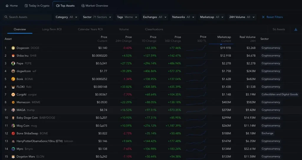 “Memecoin’ler (toplam piyasa değeri 40 milyar doların üzerinde) DeFi, DePIN ve Exchange gruplarından daha büyük.”