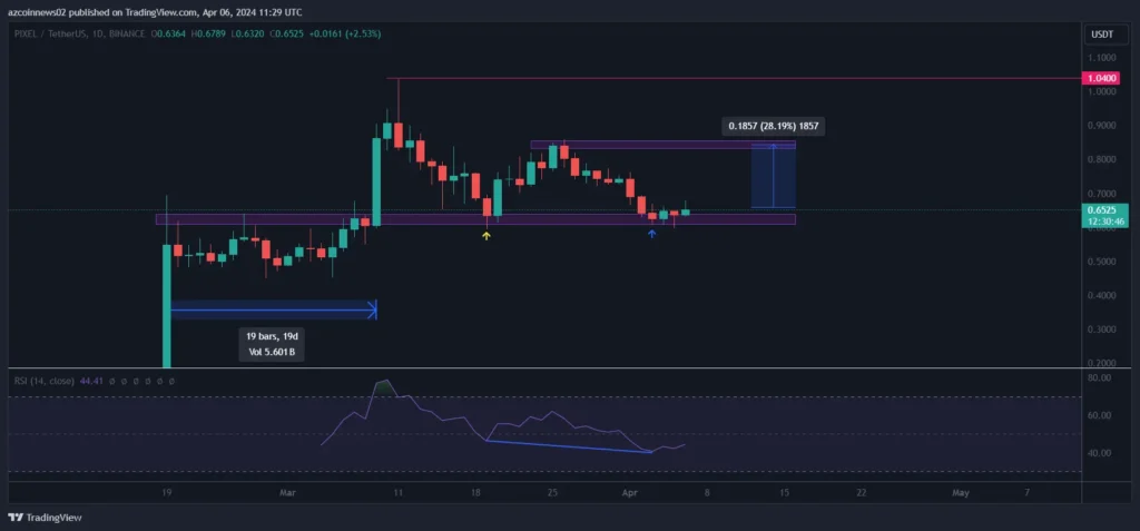 Pixels’in (PIXEL) fiyatı, daha önce Binance borsasında listelenir listelenmez direnç sağlayan kritik bir yatay destek bölgesine dokundu. Tokenin şimdi bu bölgeden sıçrayarak daha da yükselmesi beklenmekte.