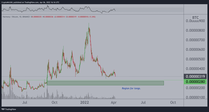 Daha sonra analist blockchain indeksleme protokolü The Graph’ı (GRT) inceliyor. The Graph’teki güncel teknik görünümü değerlendiren kripto para analisti Michaël van de Poppe, GRT‘nin direnç seviyesini aşamazsa aşağı yönlü hareket edeceğini aktardı. Bununla birlikte analist, Harmony (ONE) için de düşüş eğilimi bekliyor. ONE/BTC paritesinde 0,00000280 destek seviyesine bir geri çekilme olursa alım noktası olacağını söylüyor.