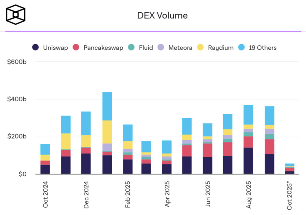 Merkeziyetsiz borsalarda (DEX) da benzer bir düşüş yaşandı. Eylül ayında toplam DEX hacmi, Ağustos’taki 368,8 milyar dolardan 363,4 milyar dolara geriledi. Lider DEX konumundaki Uniswap, 143 milyar dolardan 106,5 milyar dolara düşüş yaşarken; PancakeSwap hacmini 58,7 milyar dolardan 79,8 milyar dolara çıkararak dikkat çekti.